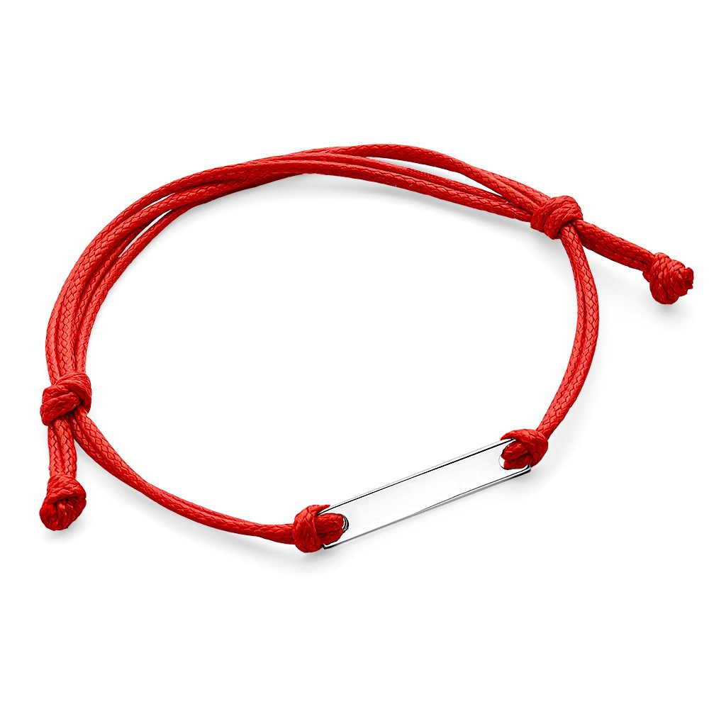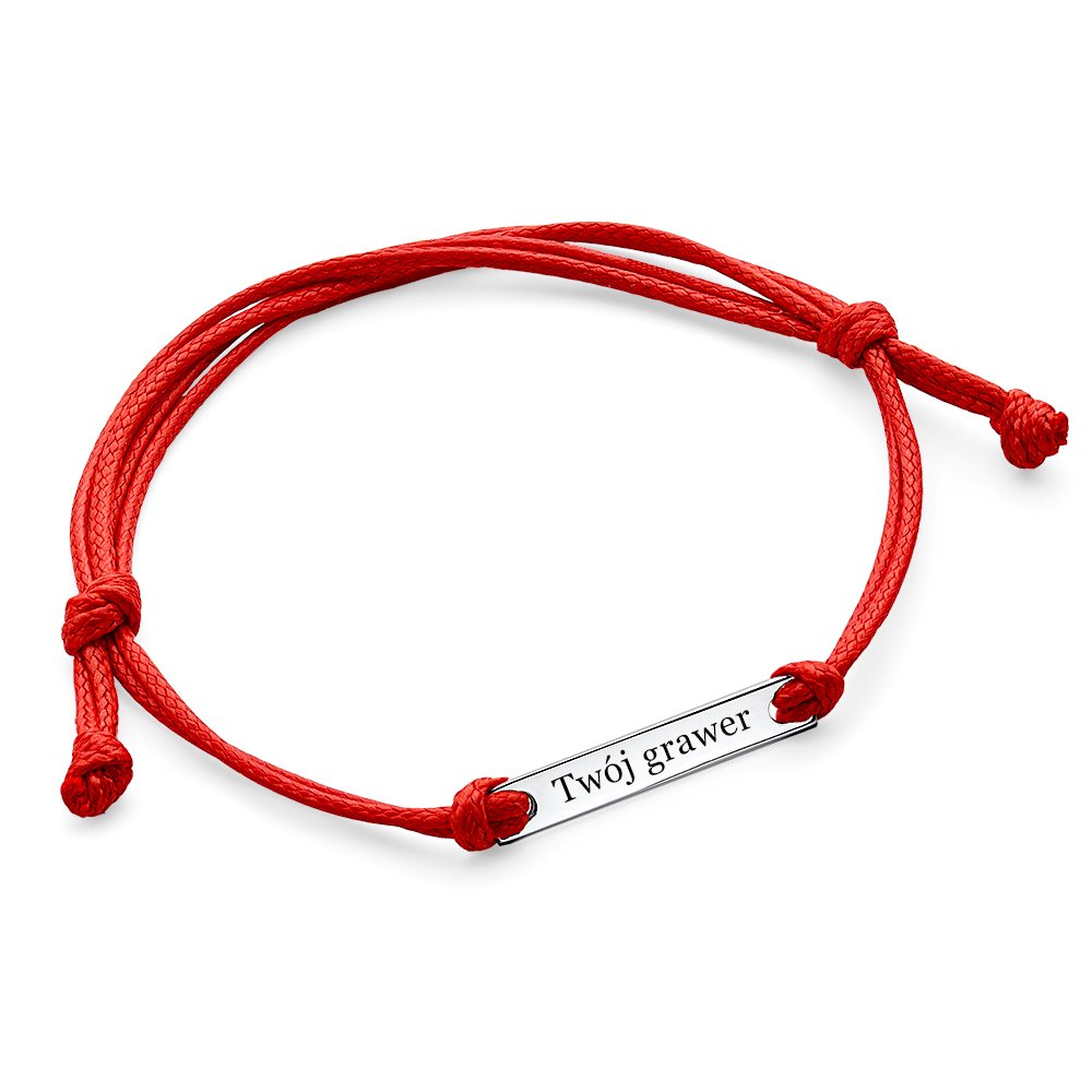Czerwona bransoletka sznurkowa z grawerem – srebro pr. 925