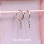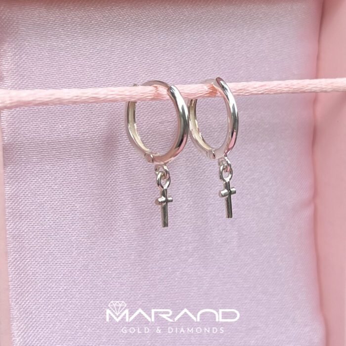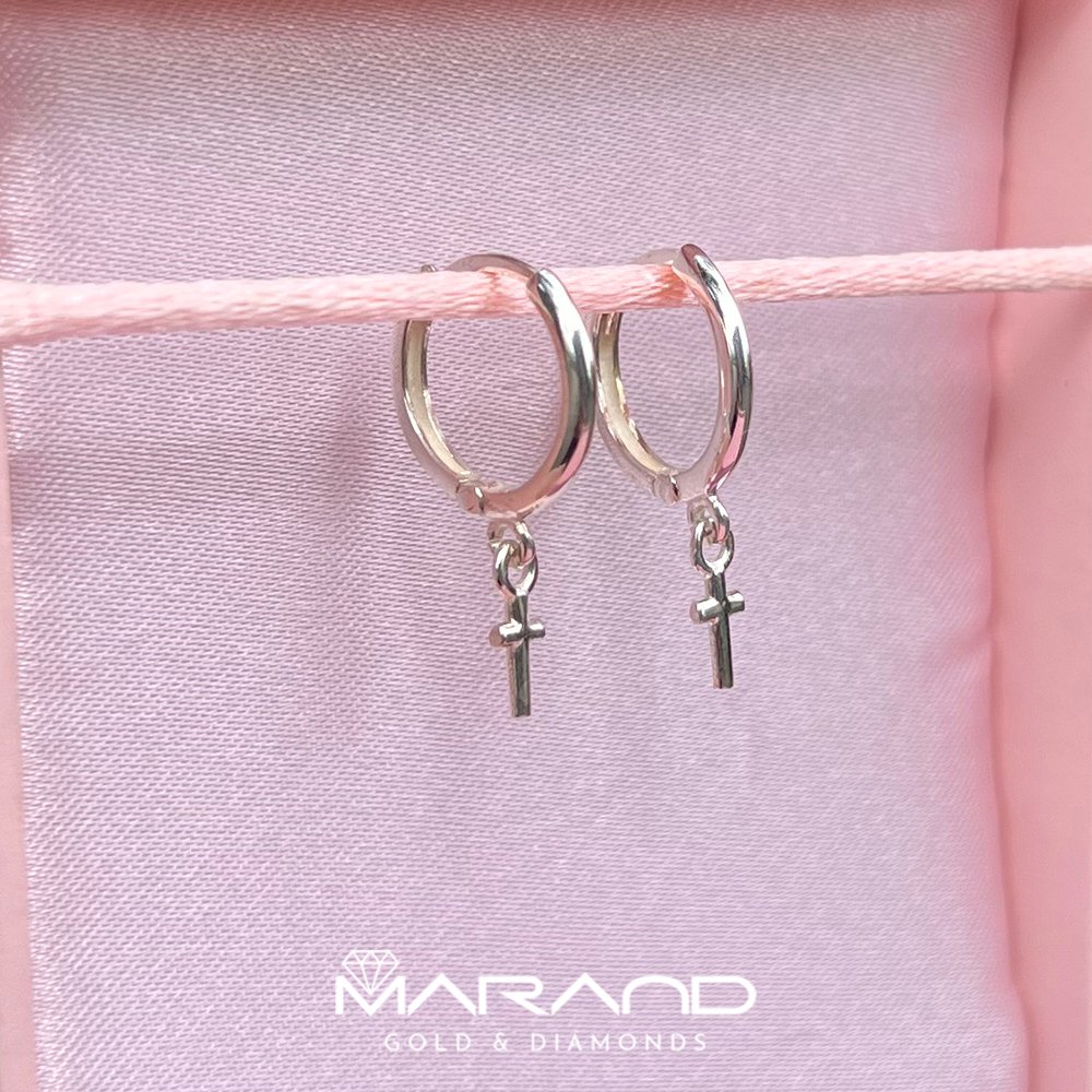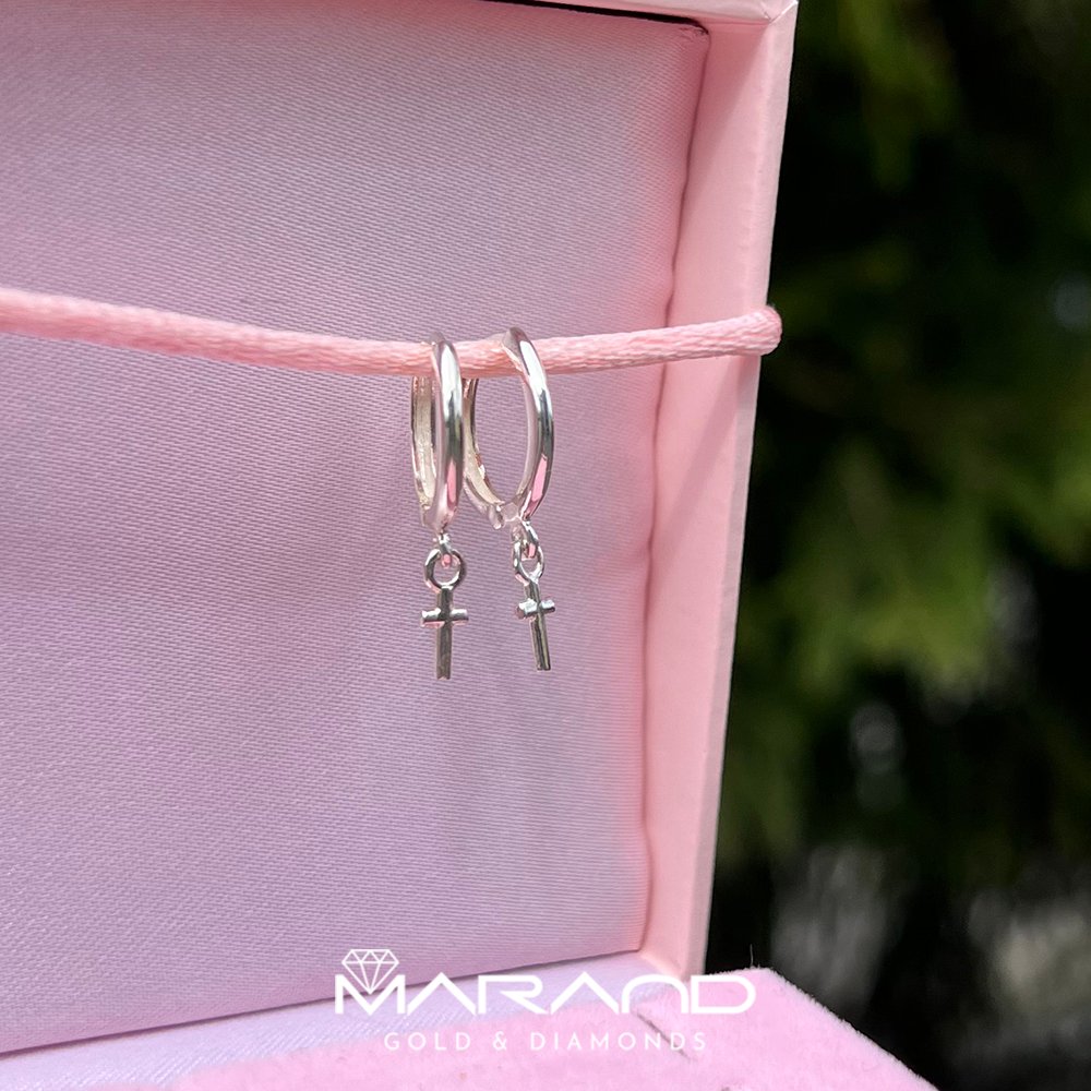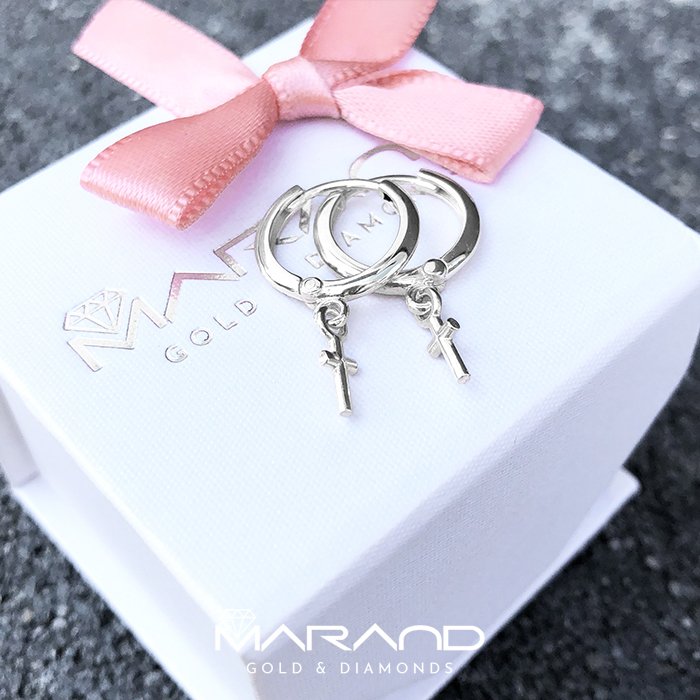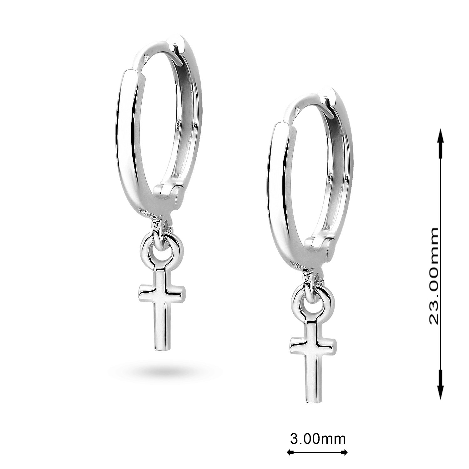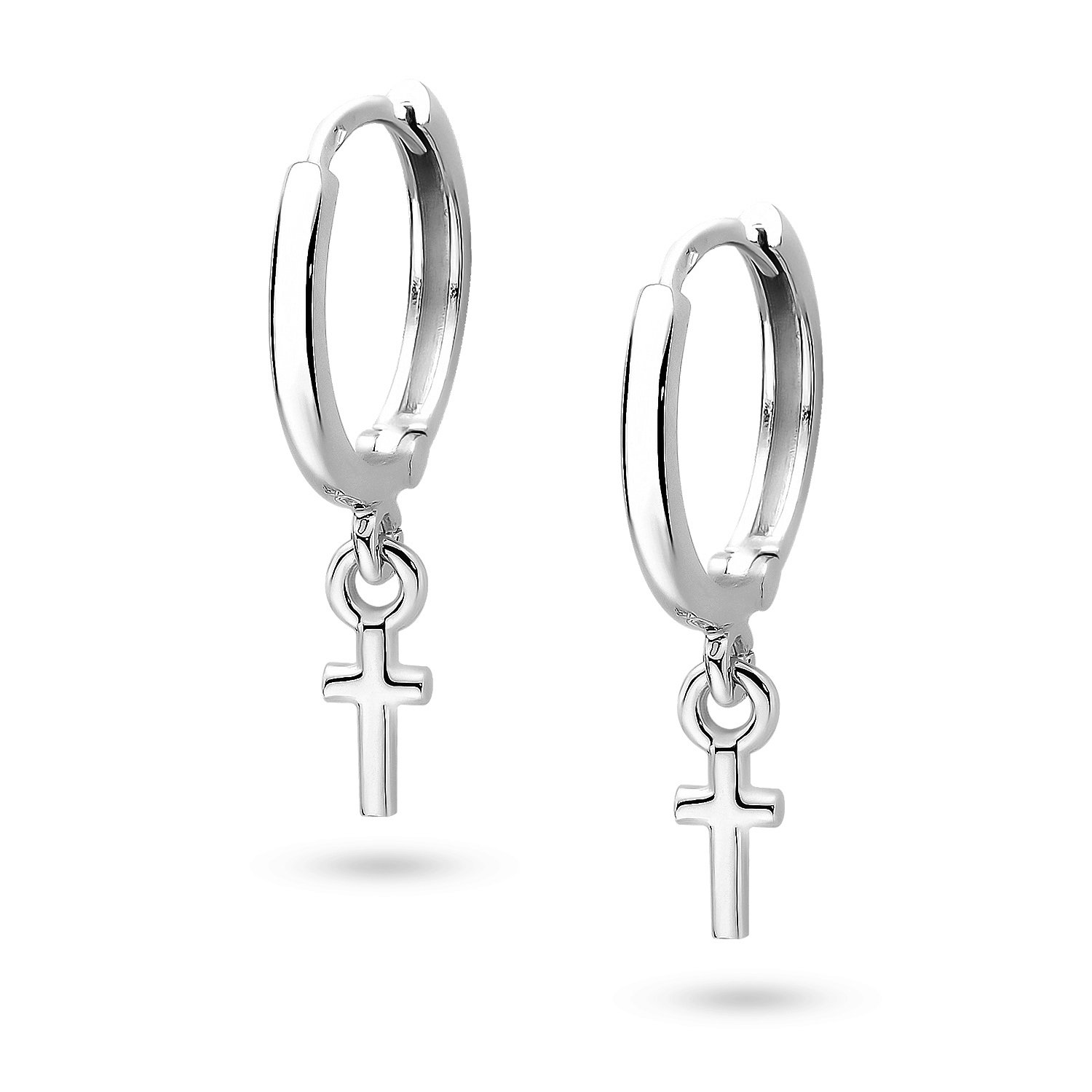 Eleganckie kolczyki wykonane z wysokiej jakości srebra próby 925 to ponadczasowy dodatek, który subtelnie podkreśli każdą stylizację. Model w formie klasycznych kółek został wzbogacony o delikatną zawieszkę w kształcie krzyżyka.
