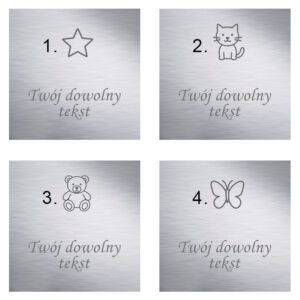 Prosimy podać numer wybranego wzoru oraz treść trzech zmiennych danych: dla kogo (np. Kochanej Amelce) od kogo (np. Matka Chrzestna, Ojciec Chrzestny, Babcia Zosia, etc.) miejscowość i datę (np. Gdynia, 11.02.2018r) lub swoją indywidualną treść dedykacji do ok 160 znaków ze spacjami.