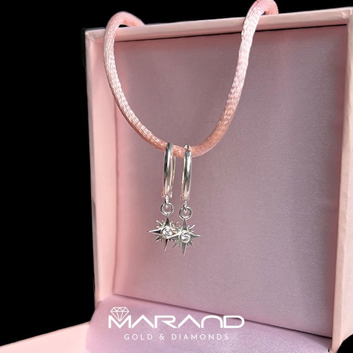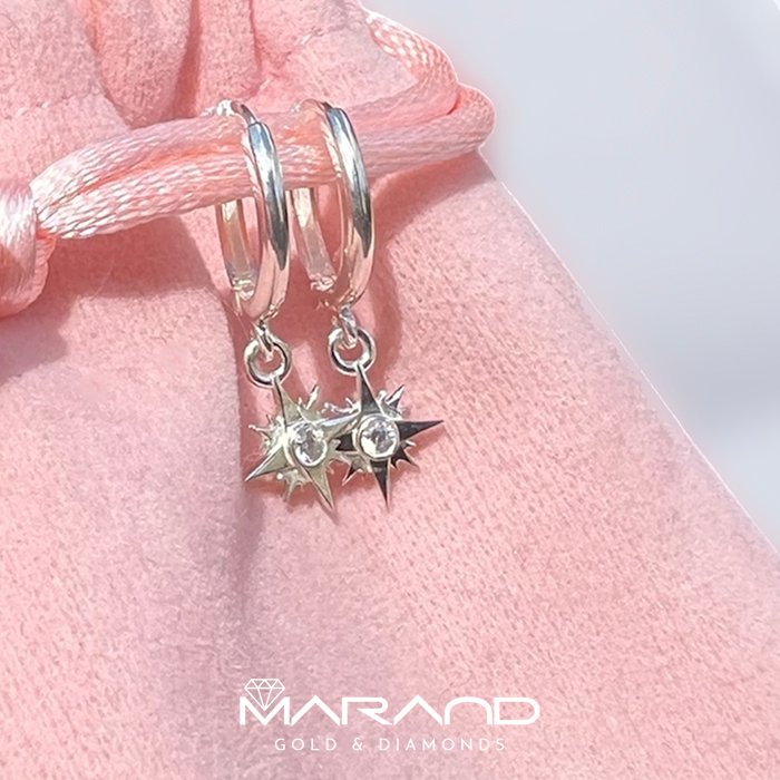 Srebrne kolczyki gwiazdki wiszące róża wiatrów 925