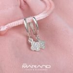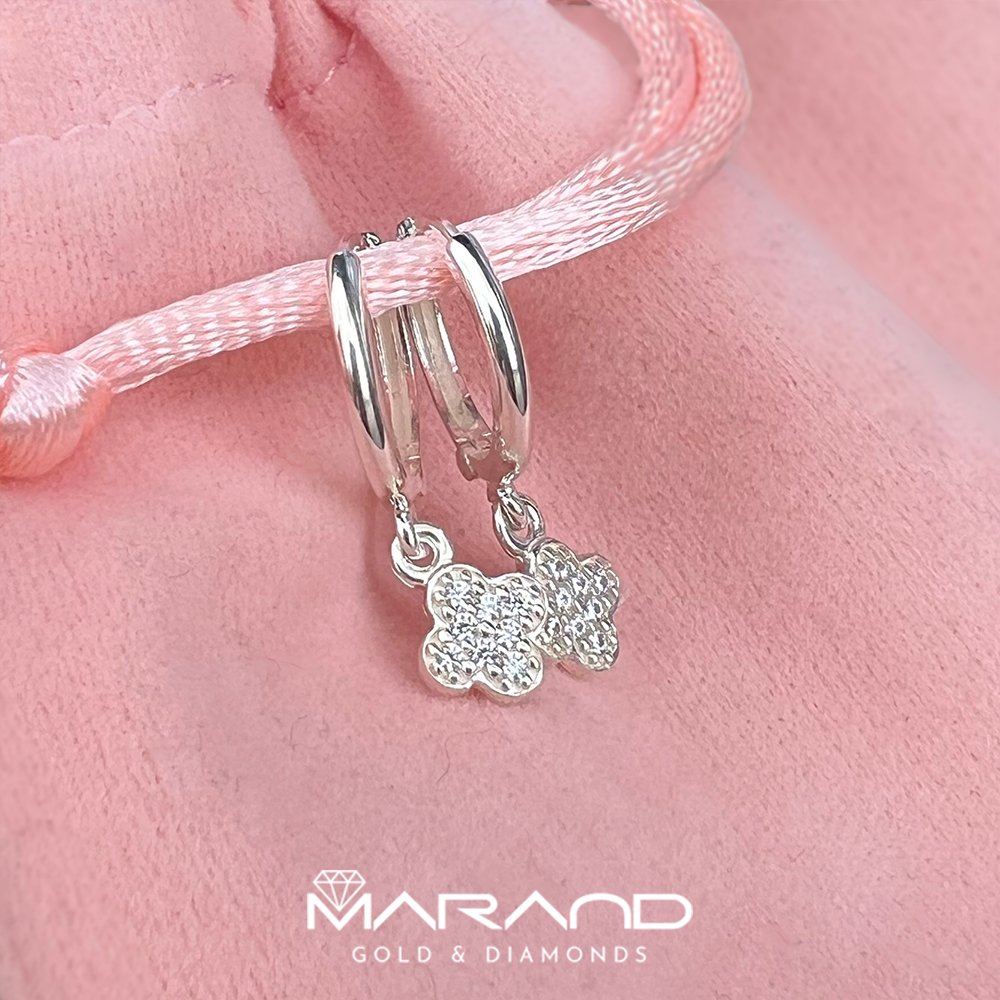 Srebrne kolczyki wiszące z subtelnym akcentem elegancji i nowoczesnego stylu. Ich głównym elementem jest delikatna zawieszka w kształcie koniczyny, misternie wysadzana lśniącymi cyrkoniami, które pięknie odbijają światło przy każdym ruchu. Symbol szczęścia w modnej odsłonie sprawia, że kolczyki są idealnym dodatkiem zarówno na co dzień, jak i na specjalne okazje.