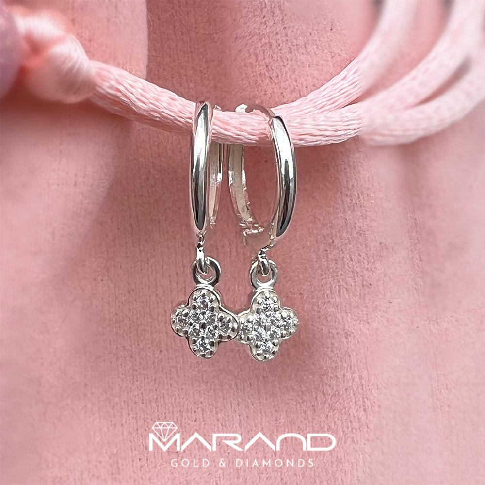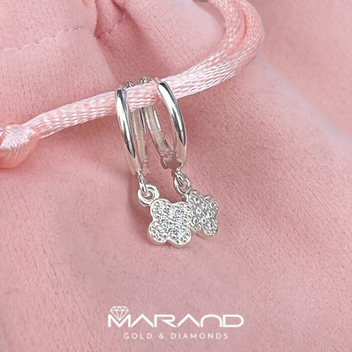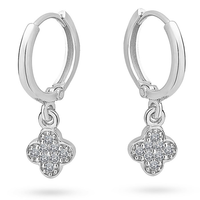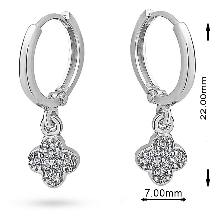 Srebrne kolczyki wiszące koniczynki z cyrkoniami 925