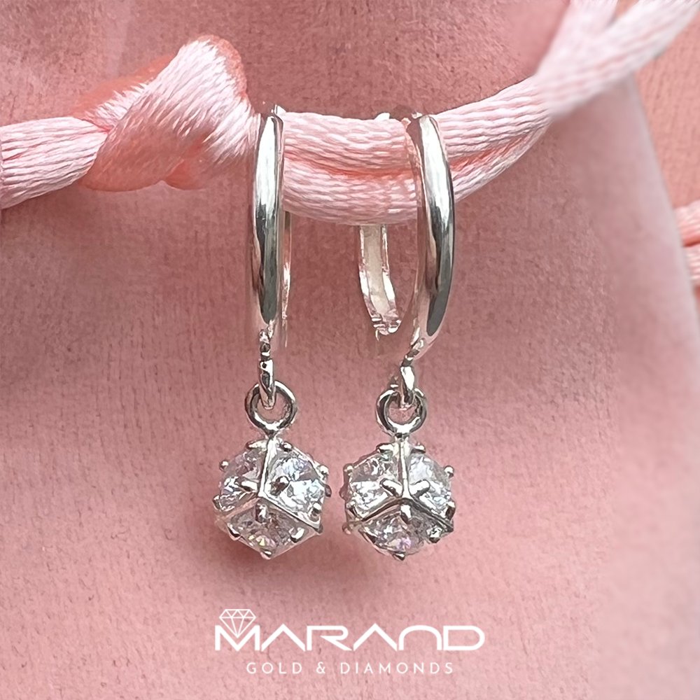 Srebrne kolczyki wiszące kostki z cyrkoniami 925