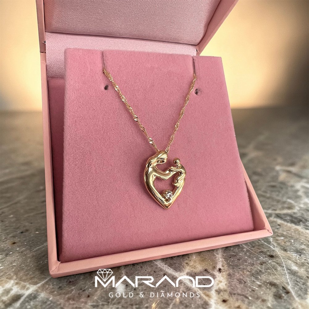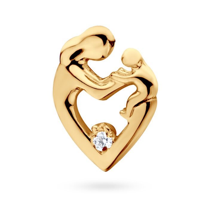 Wyjątkowa złota zawieszka wykonana z wysokiej jakości żółtego złota próby 333 to piękny symbol miłości i więzi między mamą a dzieckiem. Subtelny wzór przedstawiający matkę i dziecko w kształcie serca doskonale oddaje ciepło, troskę i bliskość, które łączą najważniejsze osoby w życiu. Delikatna cyrkonia umieszczona u dołu zawieszki dodaje eleganckiego blasku i podkreśla wyjątkowy charakter biżuterii.