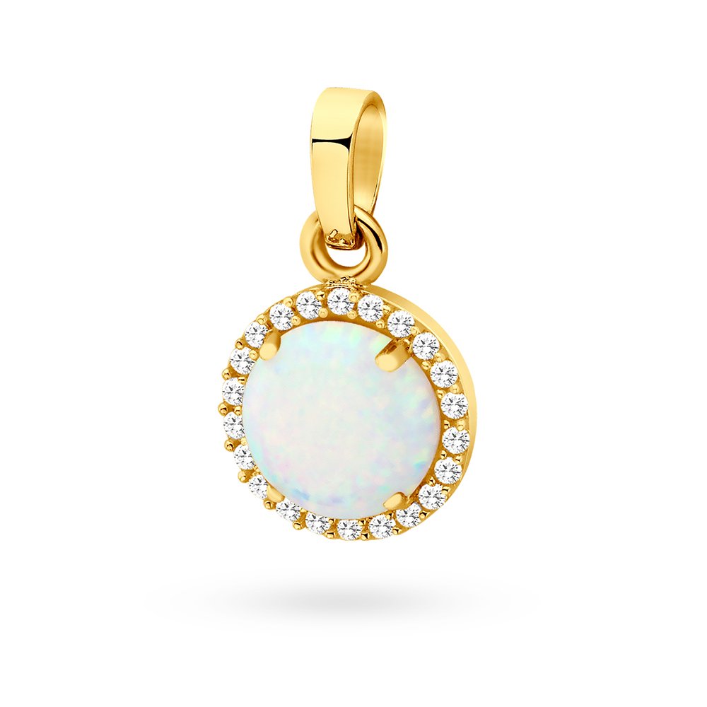 Złota zawieszka z okrągłym opalem i cyrkoniami Swarovski pr.333
