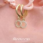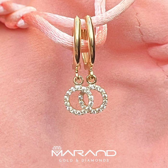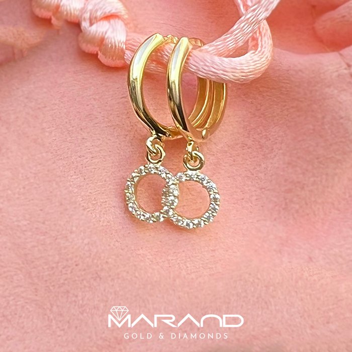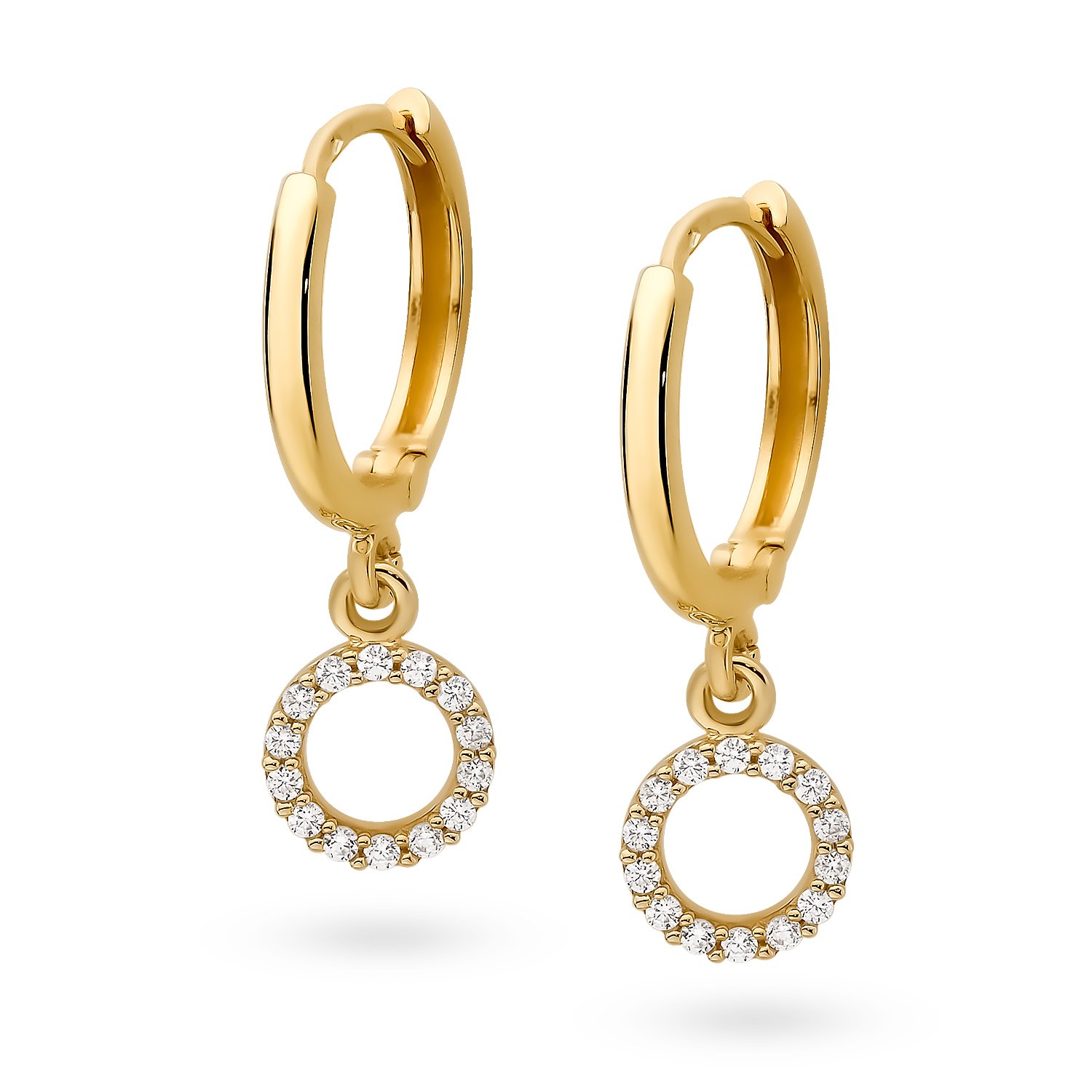 Subtelne złote kolczyki kółka z cyrkoniami wiszące