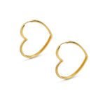 Proste i eleganckie złote kolczyki w formie okazałych serc. Nowoczesny charakter nadaje płaski otwarty od wewnątrz profil obręczy z żółtego złota wygięty w kształt serca. Pięknie prezentują się w uszach, przyciągają wzrok ciepłym blaskiem złota. Posiadają bezpieczne zapięcie w postaci sztyftu zamykanego w pętelce. W całości ręcznie wykonane. Wymiary: 32.00 x 25.00 mm.