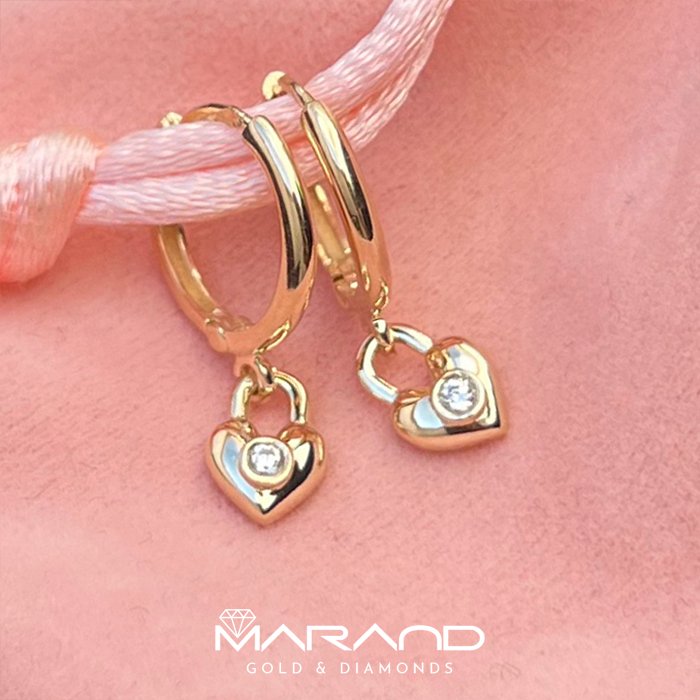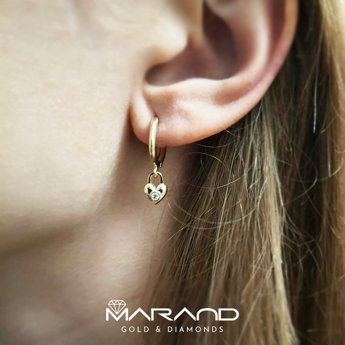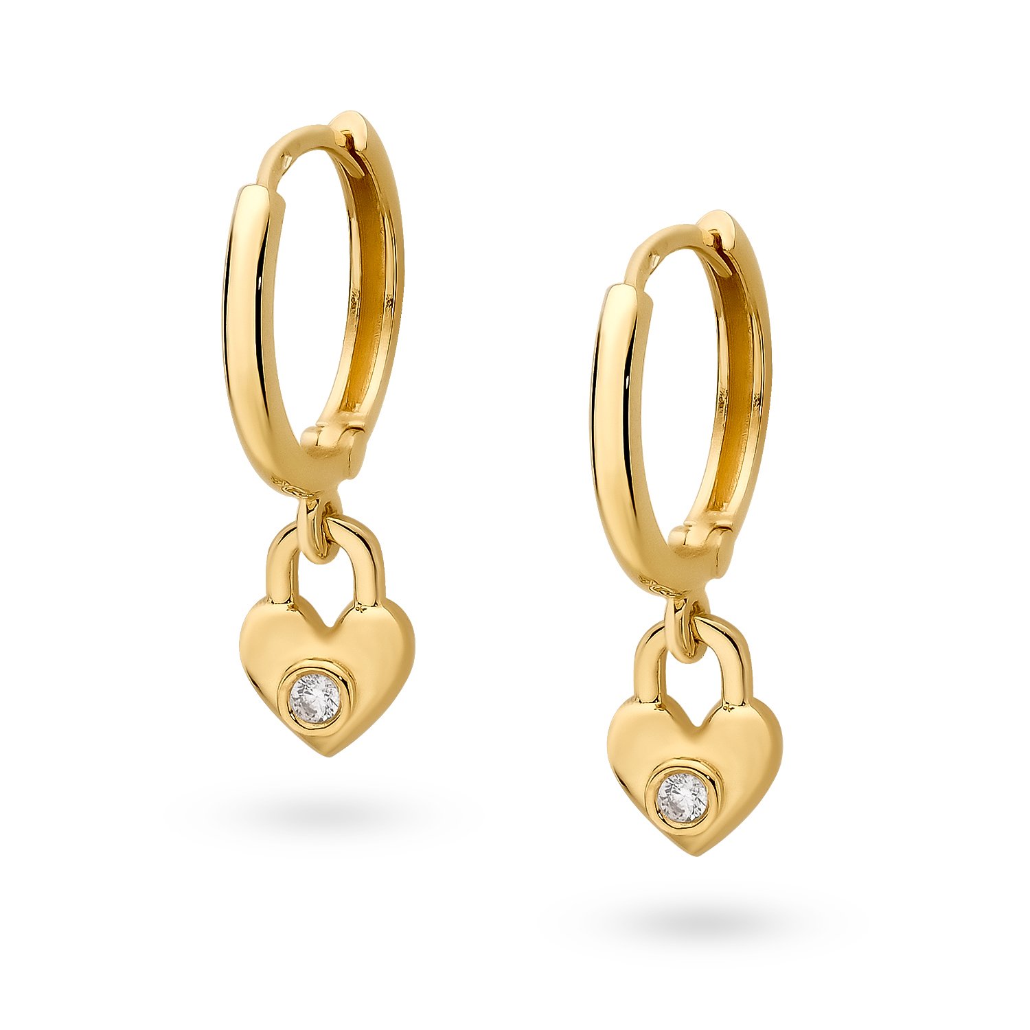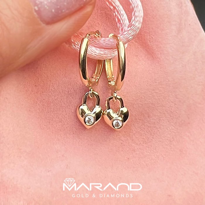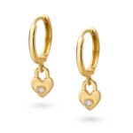Złote kolczyki wiszące z subtelnym akcentem elegancji i nowoczesnego stylu. Ich głównym elementem jest delikatna zawieszka w kształcie serca z cyrkonią. Symbol szczęścia i miłości w modnej odsłonie sprawia, że kolczyki są idealnym dodatkiem zarówno na co dzień, jak i na specjalne okazje.
