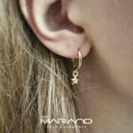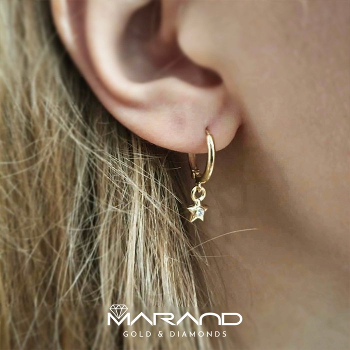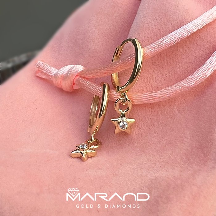 Złote kolczyki wiszące z subtelnym akcentem elegancji i nowoczesnego stylu. Ich głównym elementem jest delikatna zawieszka w kształcie gwiazdki z cyrkonią. Kolczyki są idealnym dodatkiem zarówno na co dzień, jak i na specjalne okazje.