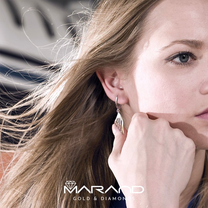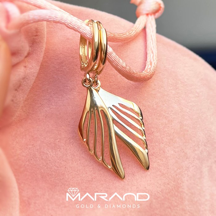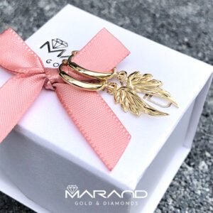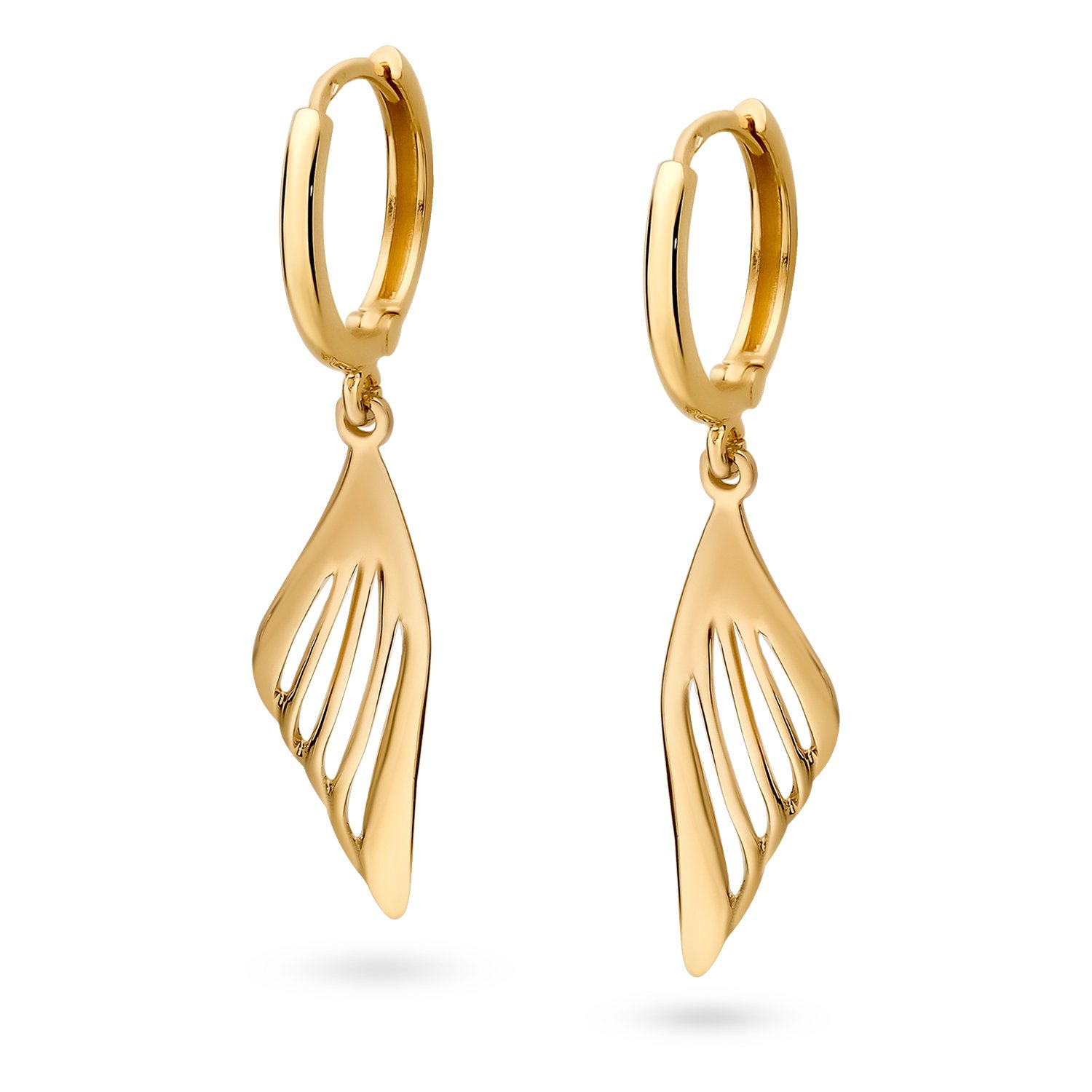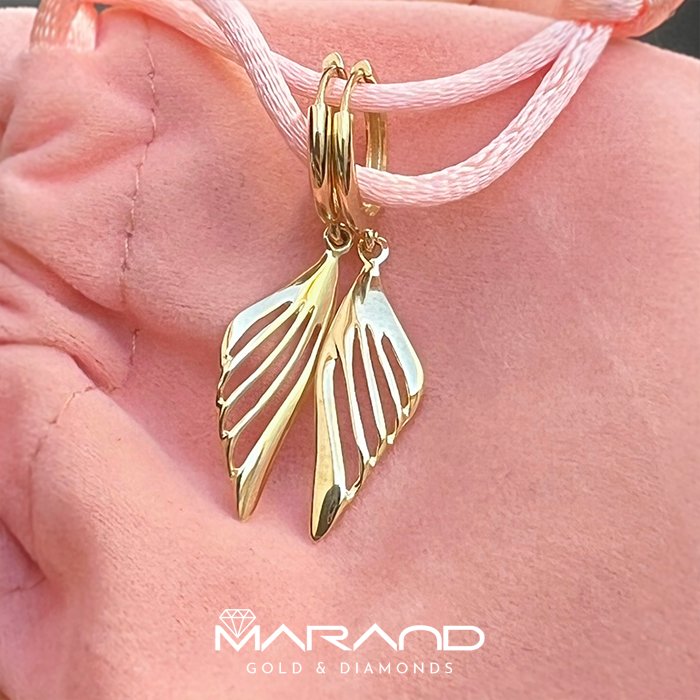 Złote kolczyki z wiszącymi elementami w kształcie skrzydeł. Wykonane z żółtego złota próby 333. Doskonały prezent na każdą okazję.