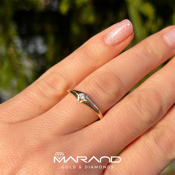 Subtelny i elegancki pierścionek wykonany z żółtego złota próby 333. Doskonały na upominek jak i symbol wiecznej miłości.